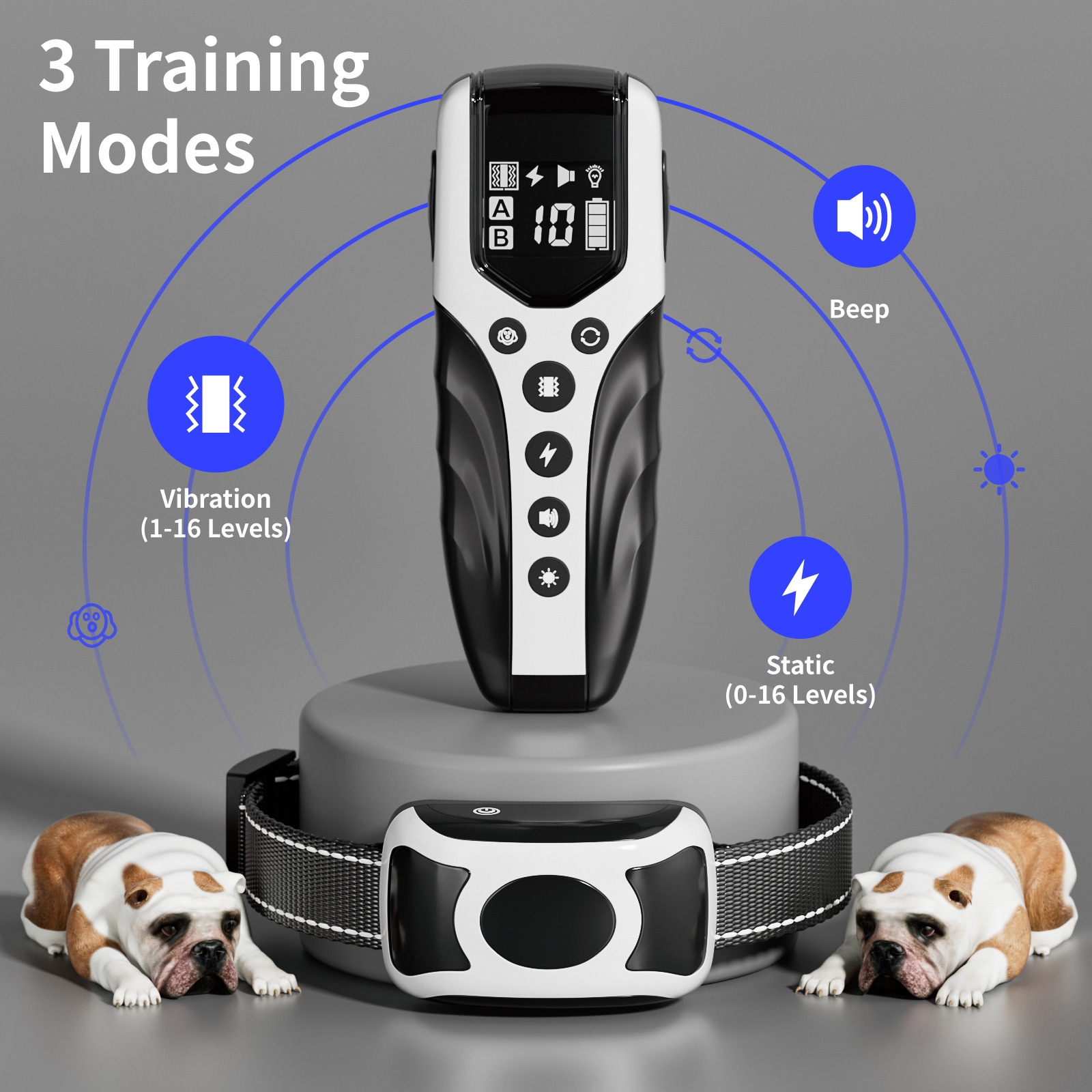 For B2B buyers, the design delivers commercial value through reduced replacement needs due to long battery life and durable construction, which improves inventory turnover and lowers return rates compared to industry averages. Retail sellers benefit from a product that appeals to pet owners seeking effective training solutions, supporting higher sales velocity and repeat purchases. For dogs, the three modes (static, vibration, tone) provide functional training options that promote safe behavior modification and overall well-being. Pet owners gain emotional reassurance through convenient remote control and reliable performance during daily use.
