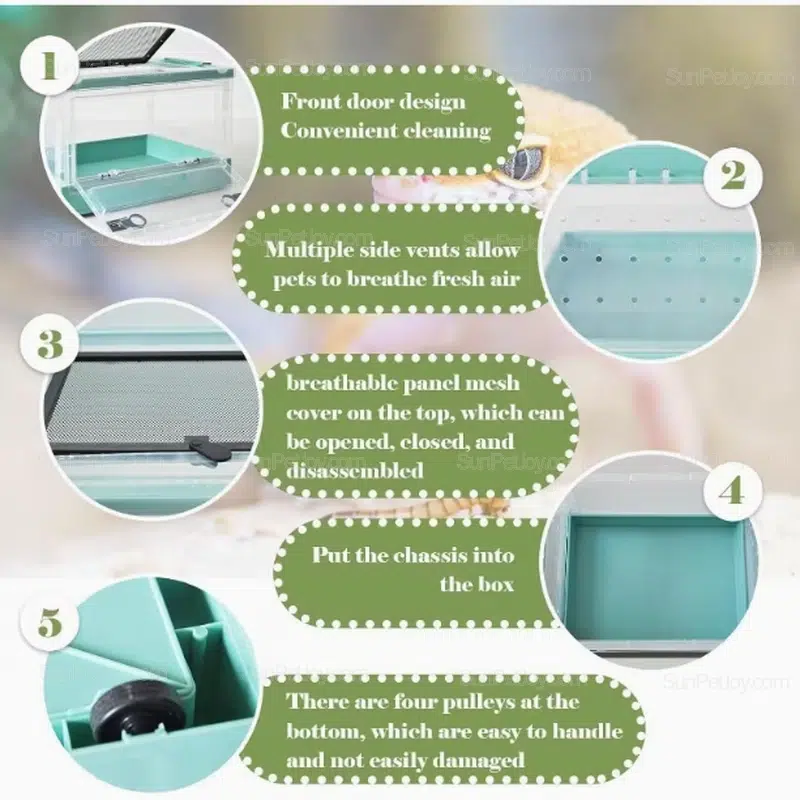 Unlike top-only access containers, the front door layout improves daily maintenance efficiency, making feeding, cleaning, and animal handling
