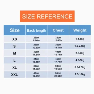 | XXL | 19.8 | 13.9 | 16.5 | 7.5-10kg |