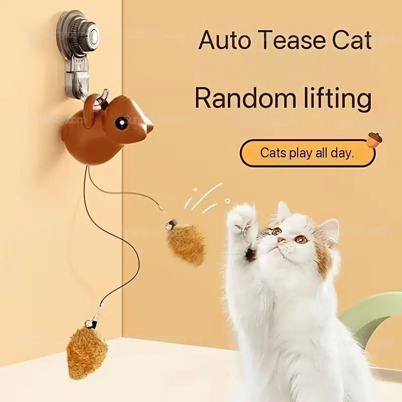 Unlike traditional static toys, this hanging cat toy uses a controlled lift-and-drop motion,