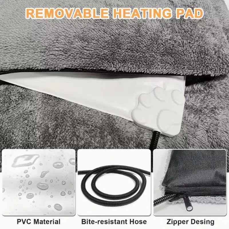 Safety comes first: dual flame-retardant layers, chew-resistant spiral metal cord, and UL-listed components throughout. Perfect for dogs and cats of all sizes when used in crates, on floors, or as standalone beds.