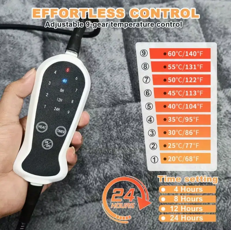 | Heating Pad | Removable pad with 9 temperature levels (68°F – 140°F) |