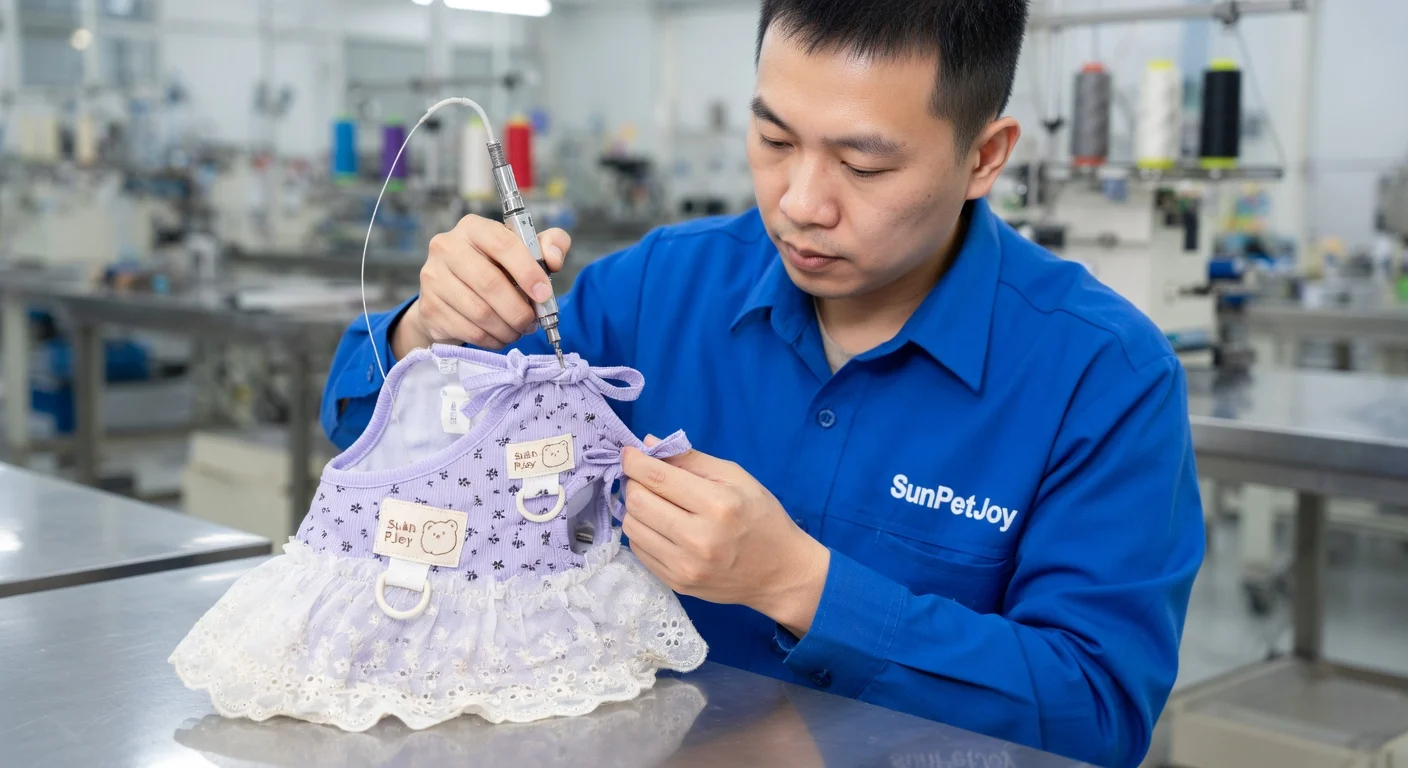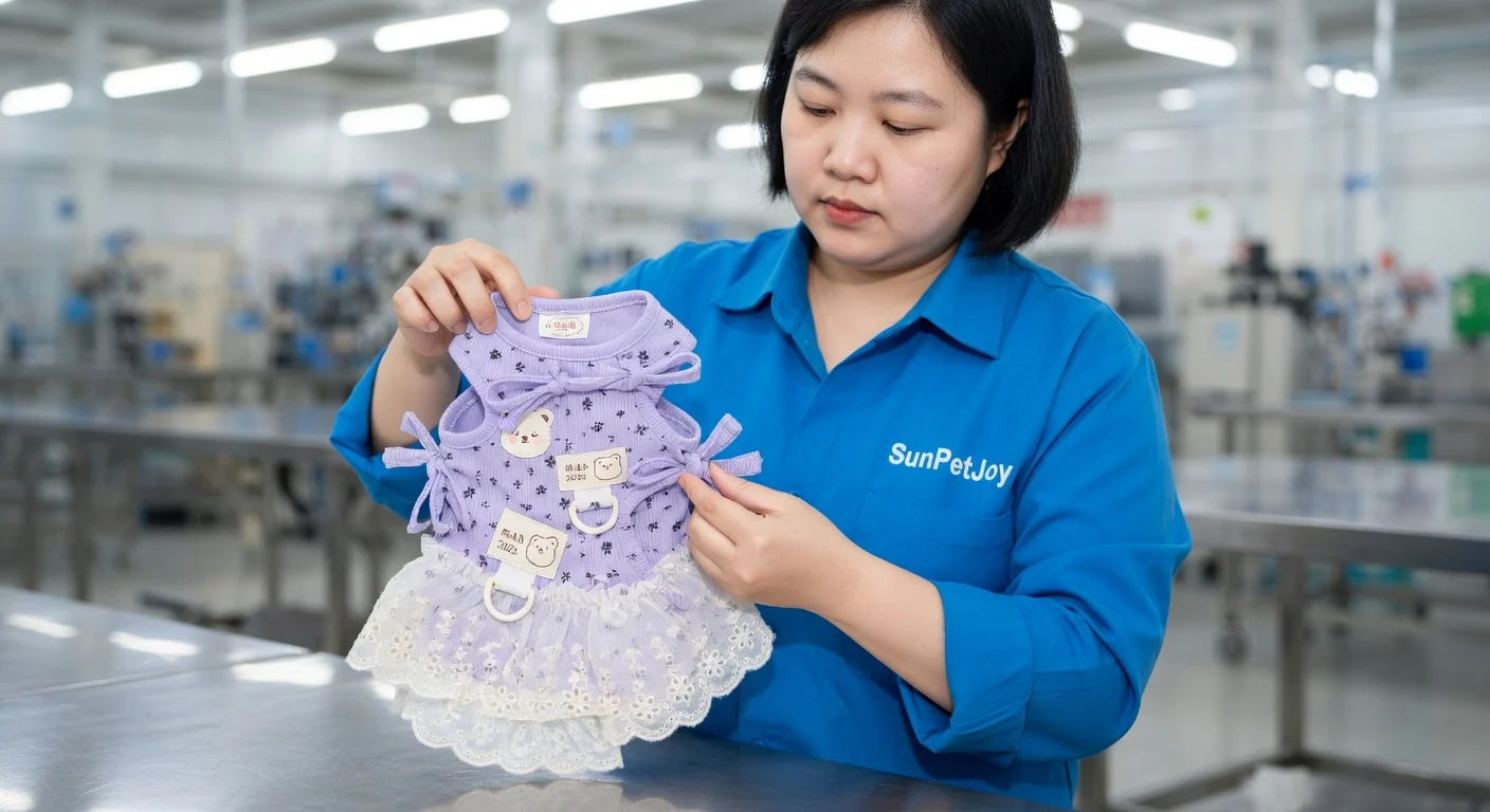 This is our detailed quality inspection where seams, dimensions, and attachments on the kitten dress are thoroughly verified before packaging, guaranteeing excellence and dependable performance in every wholesale shipment.