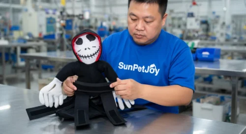 This is our detailed quality inspection verifying seam strength and construction consistency on every finished Large Dog Halloween Costume, upholding precision standards for dependable wholesale supply.