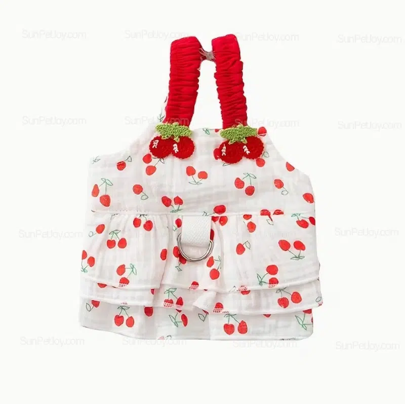 This breathable cherry cat dress is developed for boutique pet brands and wholesale buyers seeking lightweight seasonal apparel with clear design differentiation.