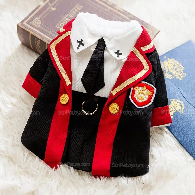 contrast trims, and uniform-style silhouette make it suitable for premium cat clothing