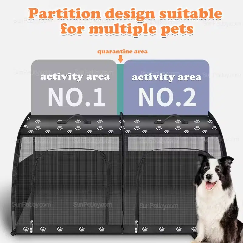 The removable divider allows temporary isolation during travel, vet visits, or recovery periods,