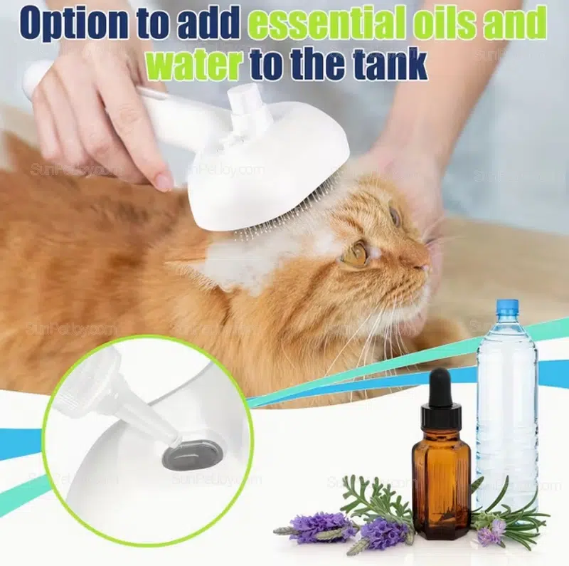 The integrated spray system lightly moistens the coat during brushing, minimizing static electricity and loose hair scatter—an issue commonly reported by groomers and pet retailers. This makes the brush especially suitable for long-haired and short-haired cats used in salons, vet clinics, and premium pet product lines.