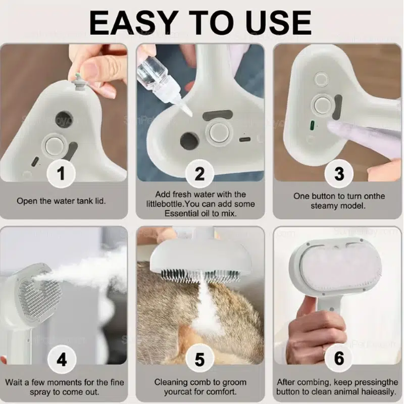 - Anti-static mist spray helps control floating cat hair during grooming