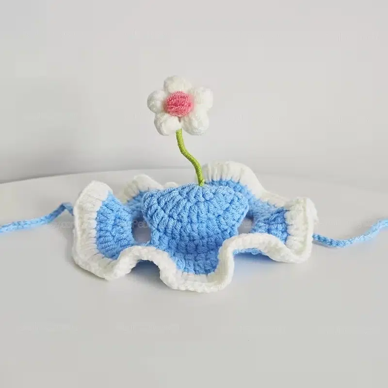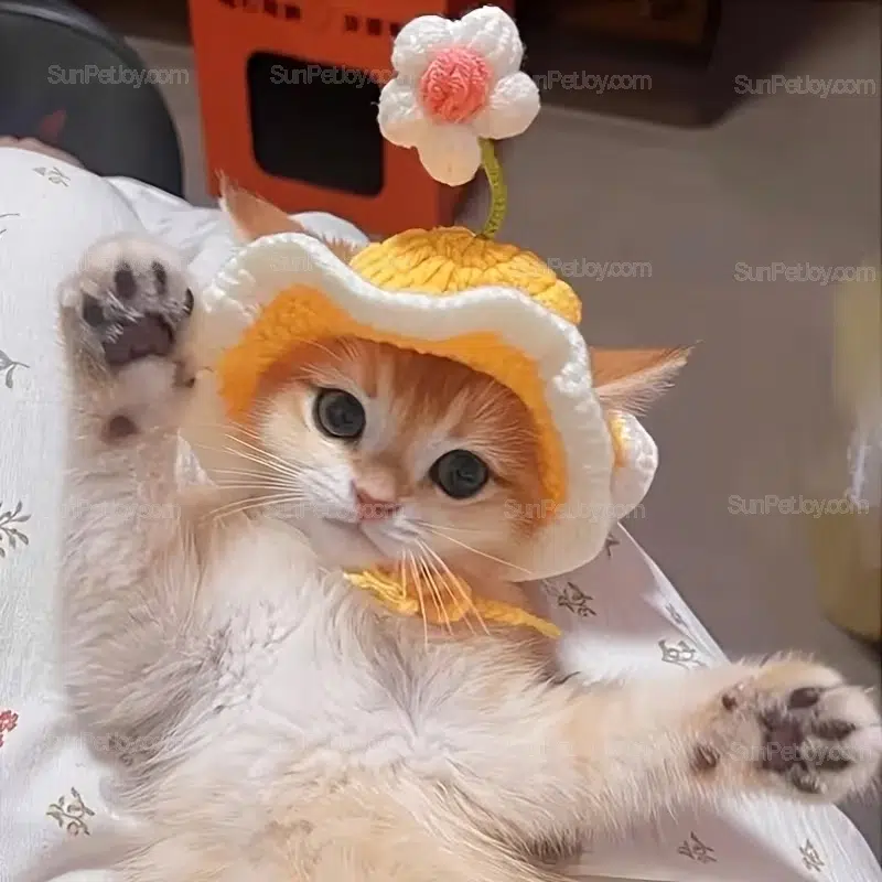 This handcrafted crochet cat flower hat is developed for pet brands and retailers looking to expand photo-driven collections and seasonal accessory lines. Made with soft yarn and an adjustable structure, it performs well as a crochet cat hat wholesale solution for studio shoots, campaign launches, and private label assortments.
