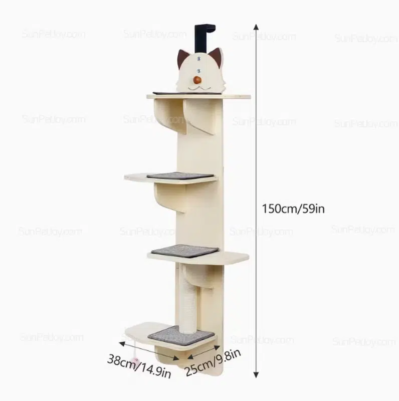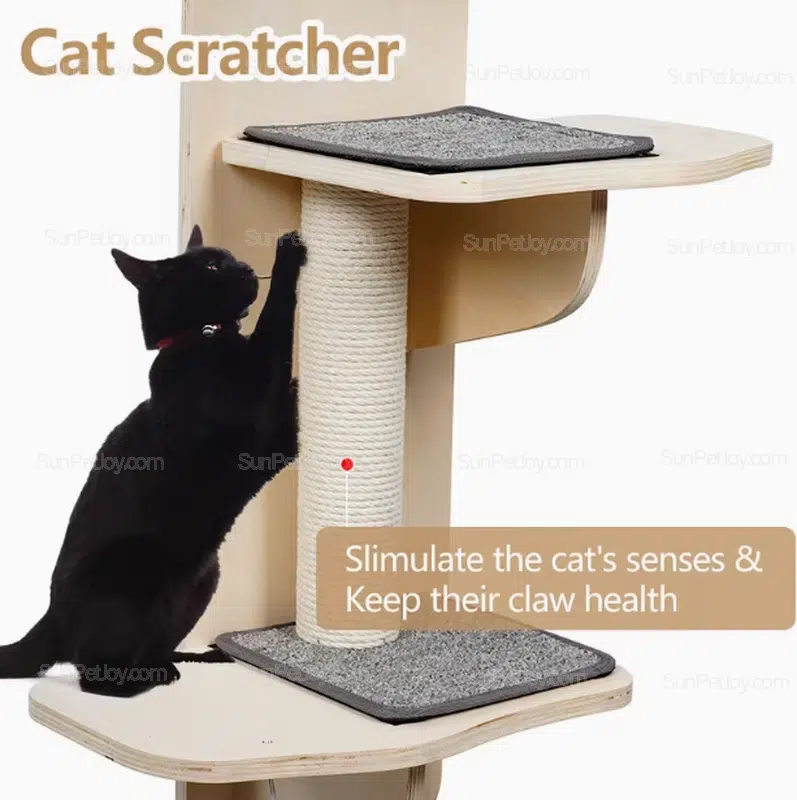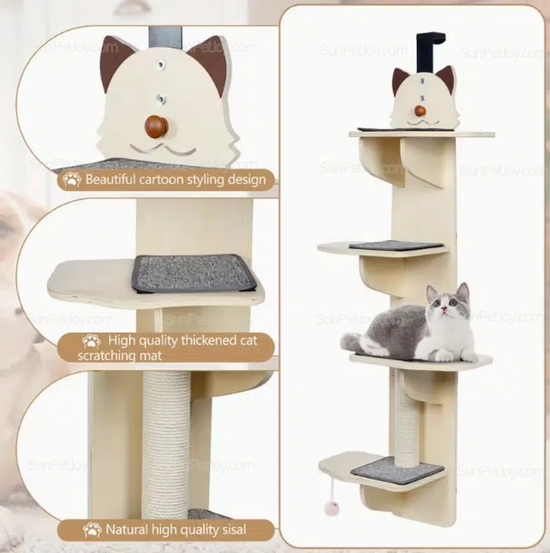 The SUNPETJOY OEM door-mounted solid wood cat climbing tower is engineered for space-efficient indoor environments where vertical utilization and structural reliability are essential. Designed for modern apartments, rental homes, and compact living spaces, this product provides a stable climbing and scratching solution without occupying floor area.