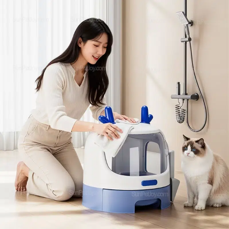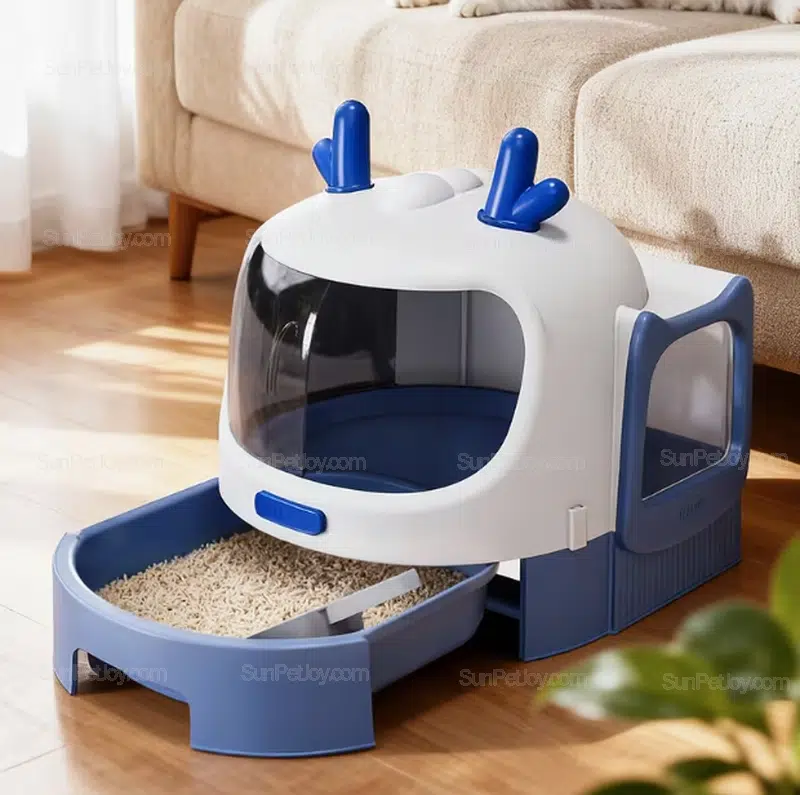 Buyers sourcing enclosed cat litter boxes often prioritize ease of cleaning, shipping efficiency, and visual differentiation. This model balances functional performance with a recognizable silhouette that stands out in both online and offline retail environments.