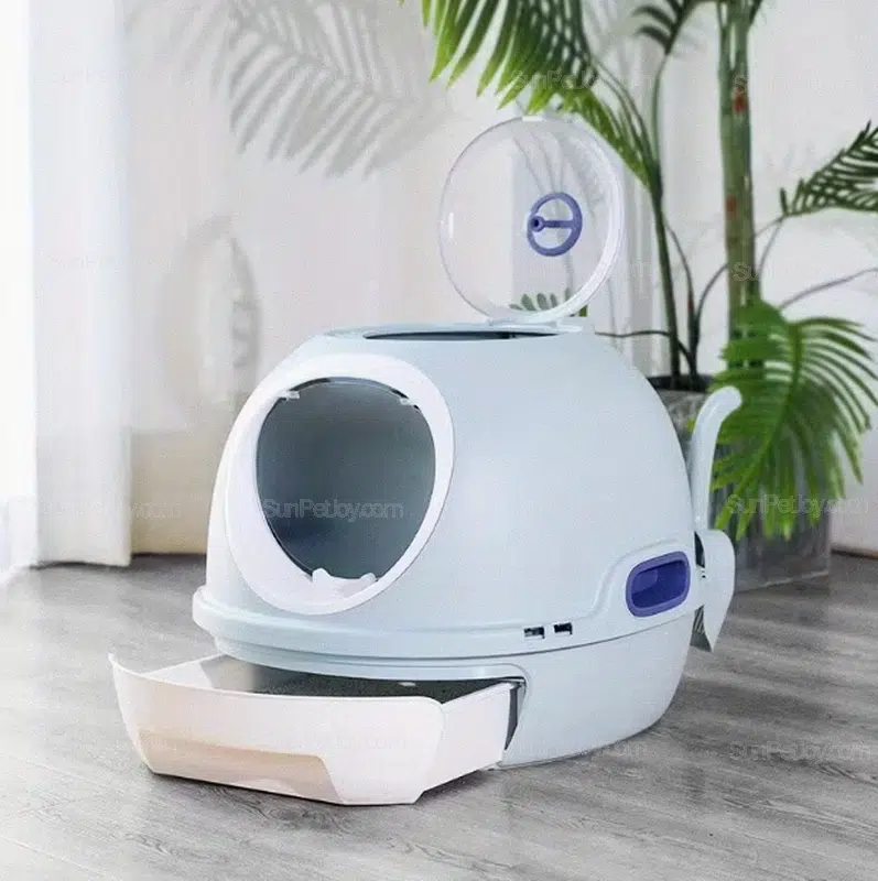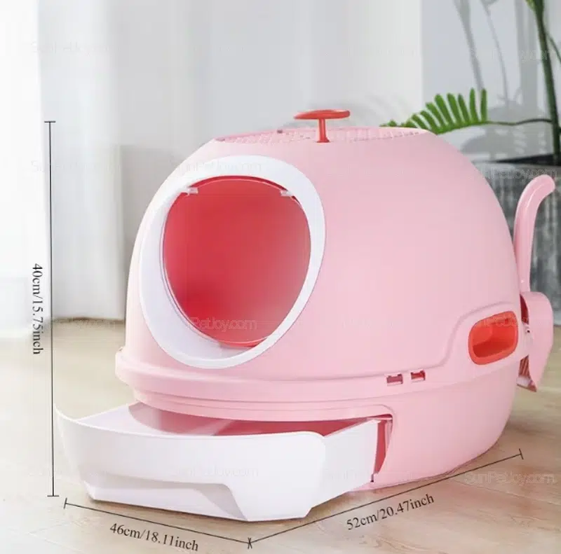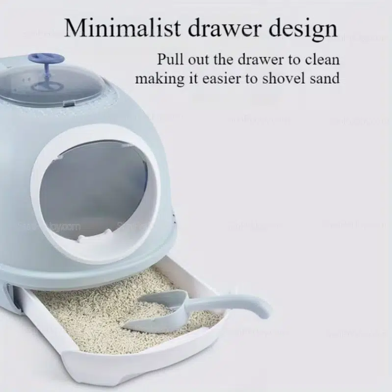 Crafted from durable plastic, it features a pull-out drawer for effortless cleaning, including a matching scoop. Ideal for B2B clients in the pet supply chain, this litter box supports full customization—adjust sizes, colors like navy or pink, and add branding for your market needs.