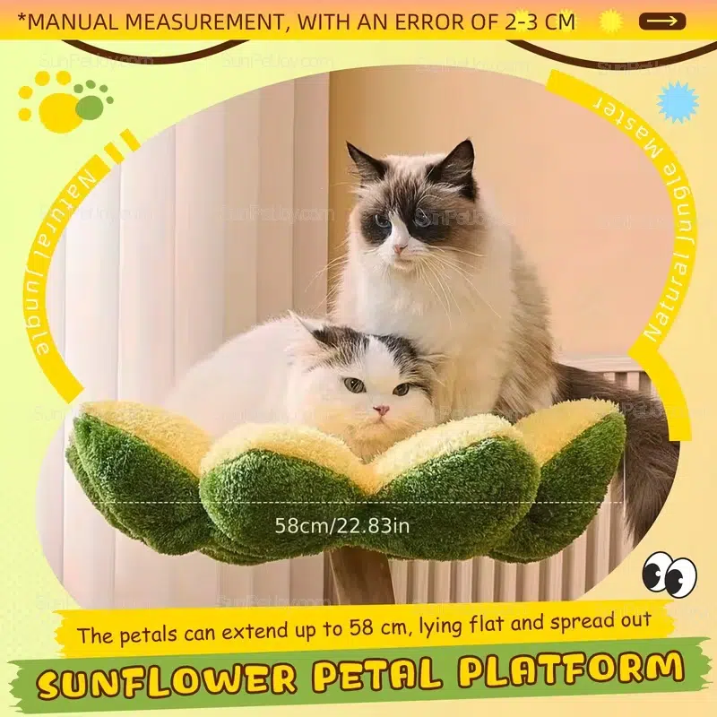 - Sunflower petal perch: padded top bed with a wide resting area for lounging.