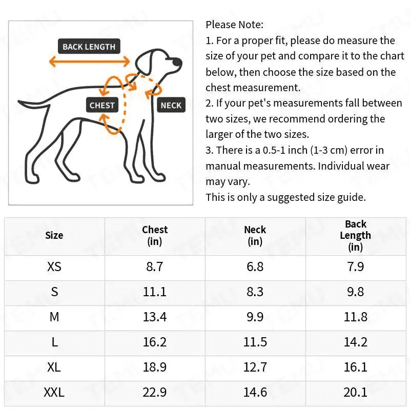 *Prioritize chest measurement; ±0.5-1in tolerance. Custom OEM pet clothing available.*