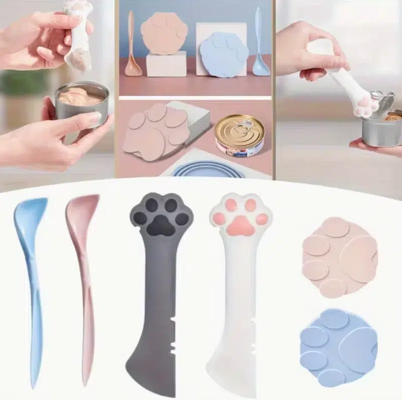 Unlike single-purpose feeding tools, this set supports multiple use scenarios including opening pet food cans, scraping leftovers, sealing opened cans, and mixing wet food. Its integrated design helps reduce product redundancy for retailers while increasing perceived value for end customers.