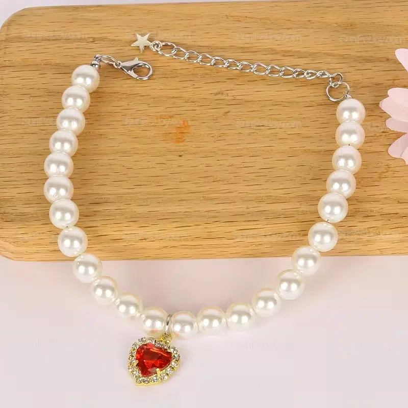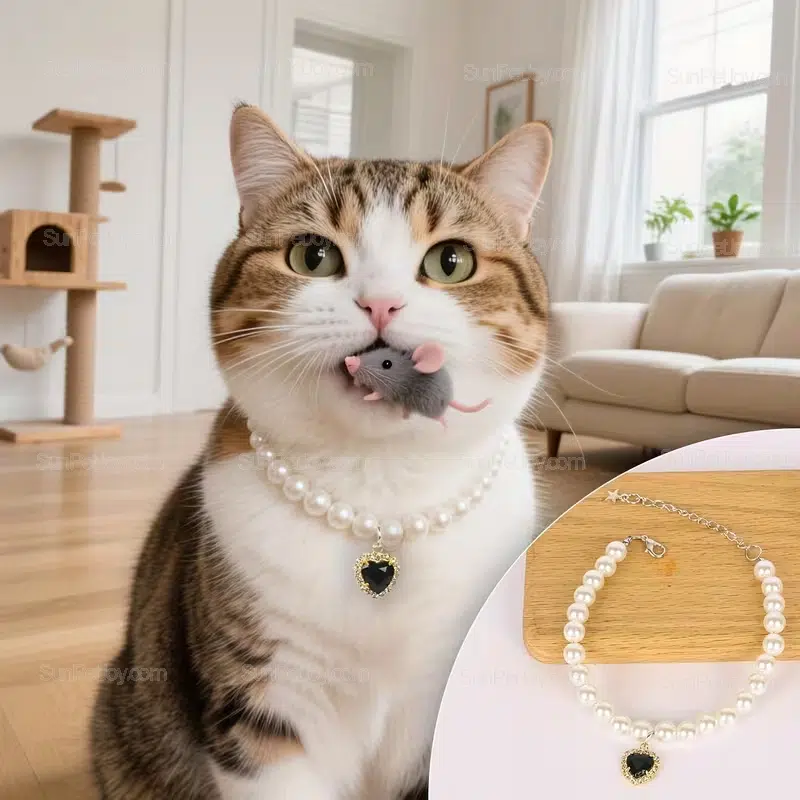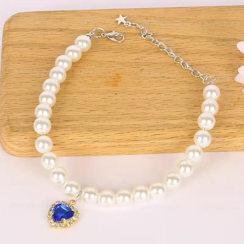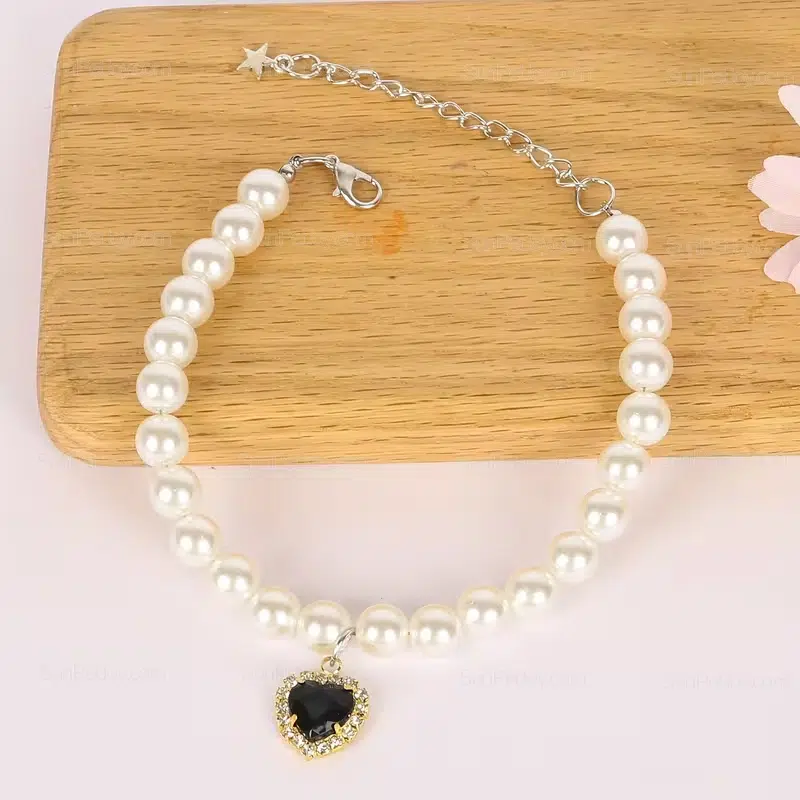 Elevate your pet accessory line with SUNPETJOY’s adjustable pet pearl necklace, a stylish beaded collar blending elegance and whimsy for dogs and cats. Crafted with lustrous imitation pearls and a sparkling synthetic gemstone heart pendant, this piece shines in pet wedding accessories or boutique displays.