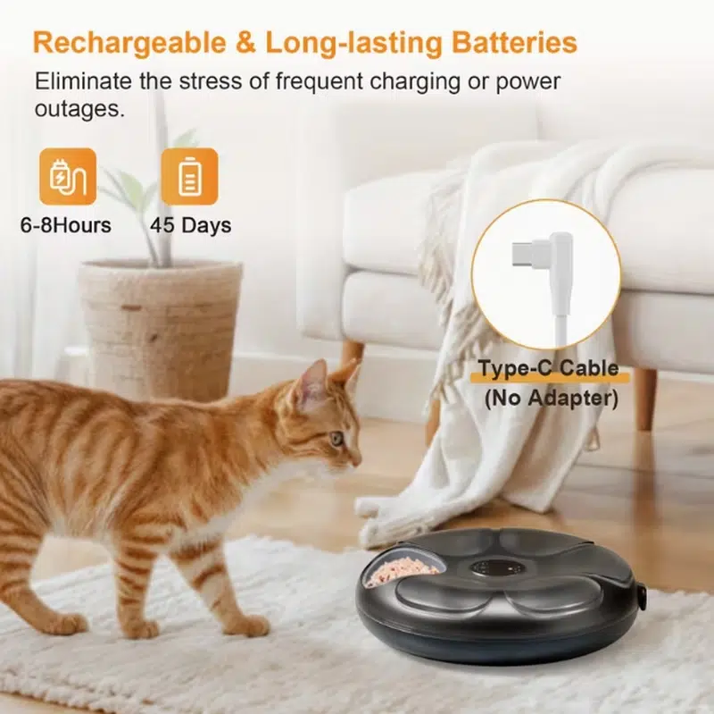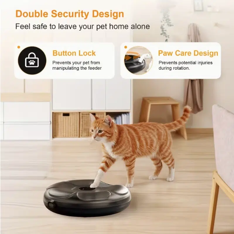With a built-in cooling system and six rotating compartments, this feeder helps maintain food