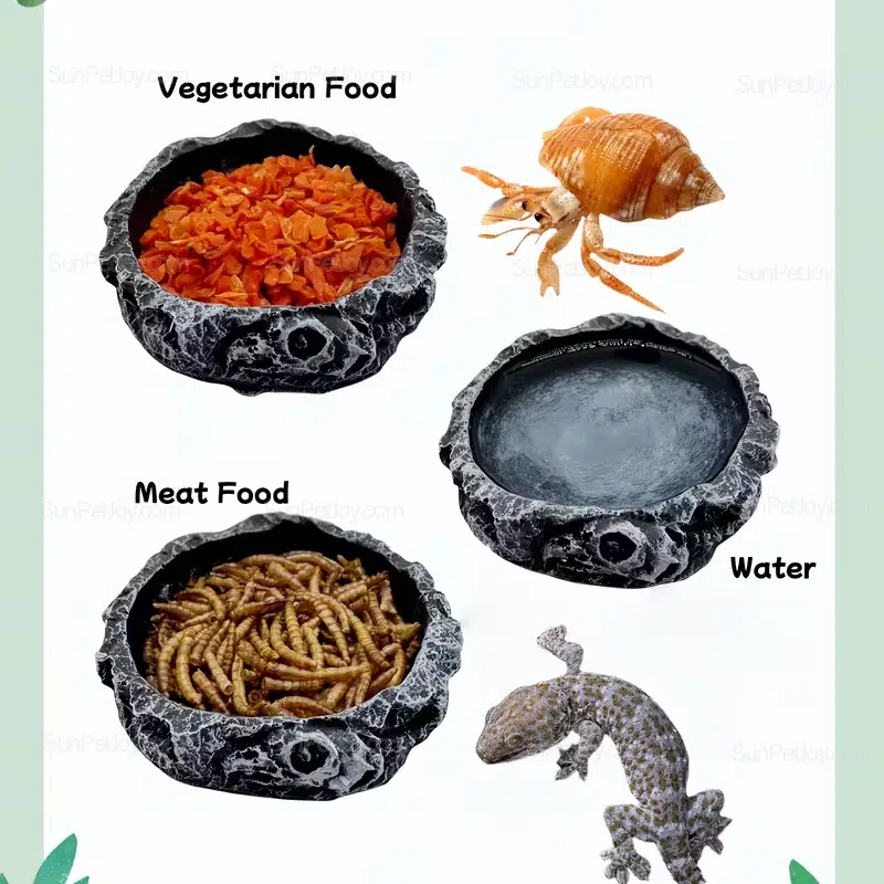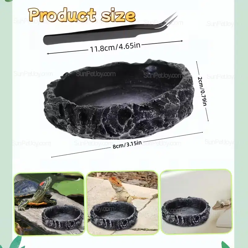 Inspired by natural rock textures, the bowl blends seamlessly into terrarium environments while providing a reliable solution for daily feeding and hydration.
