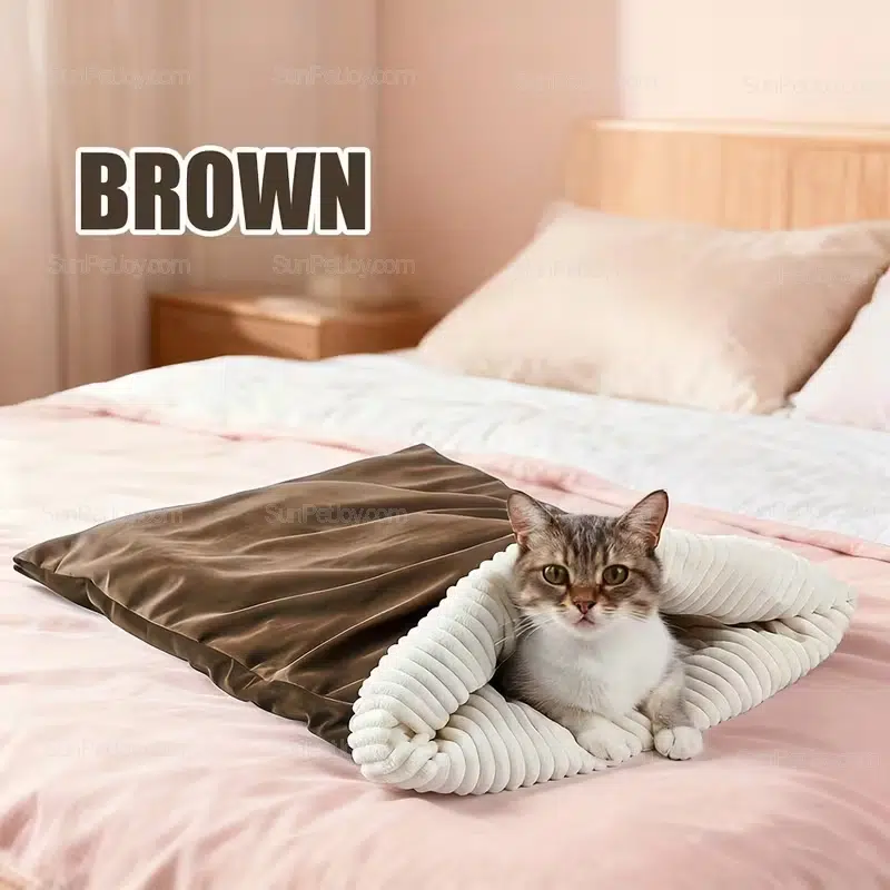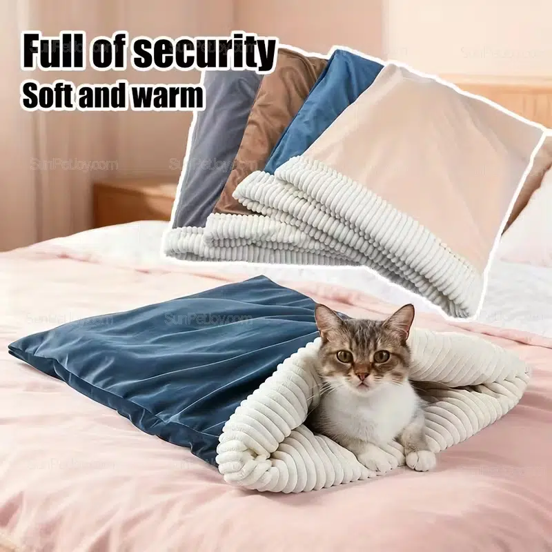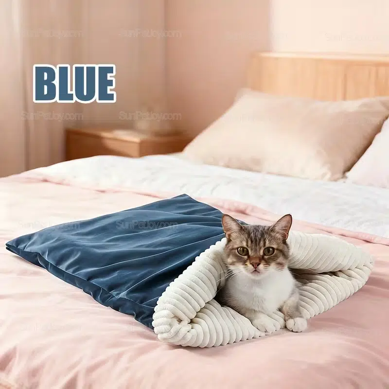 - Semi-enclosed cat sleeping bag design encourages natural nesting behavior