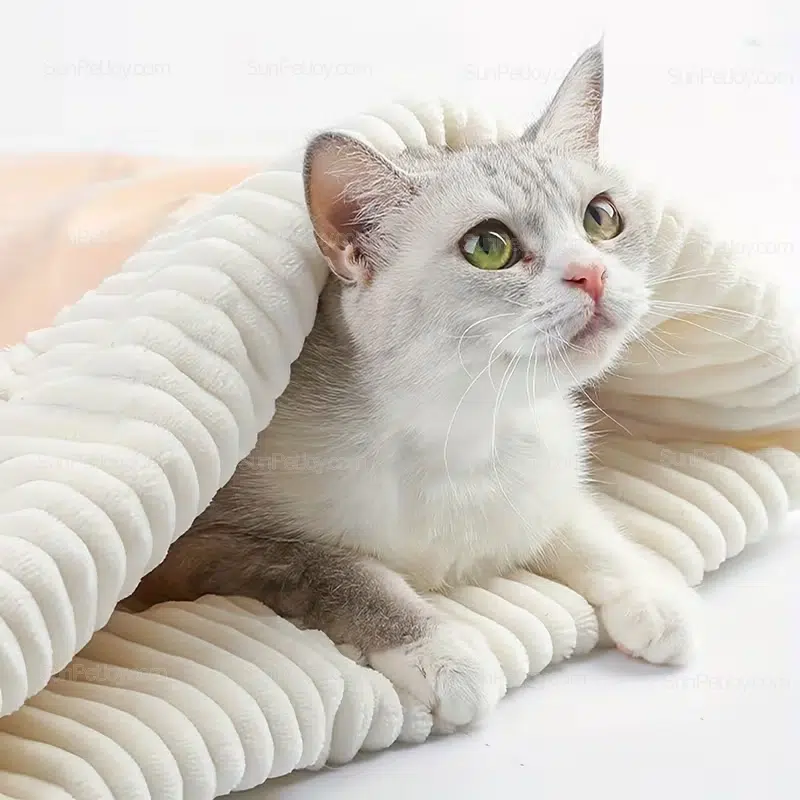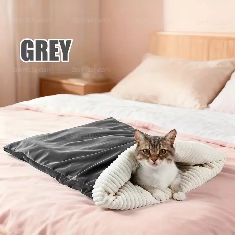 This cat sleeping bag is commonly used in indoor home settings, pet retail displays, seasonal promotional bundles, and online pet product collections. Its neutral color options make it easy to integrate into modern home interiors while maintaining a functional pet bedding role.