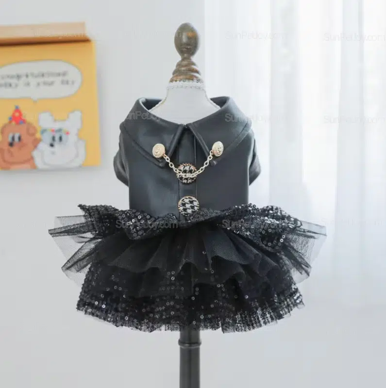 Elevate your pet apparel line with our OEM shimmering cat fashion skirt, crafted from sleek black sequined tulle that catches light beautifully. This designer cat outfit blends elegance and sparkle, ideal for brands seeking standout pieces in the growing cat costumes market.