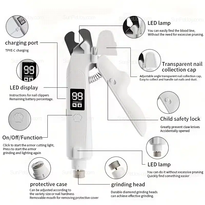 - Transparent nail collection cap for cleaner grooming workflows