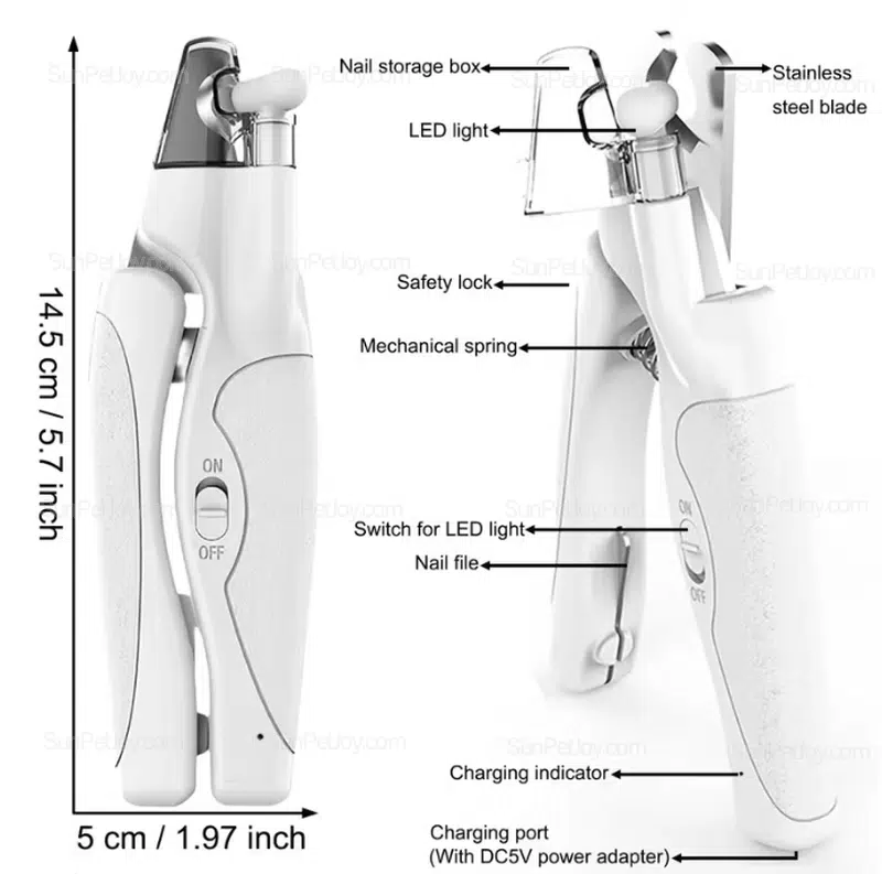 - Integrated nail storage box to reduce mess during grooming