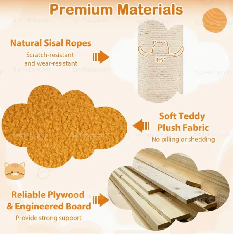- Natural sisal scratching posts for durability and repeat use