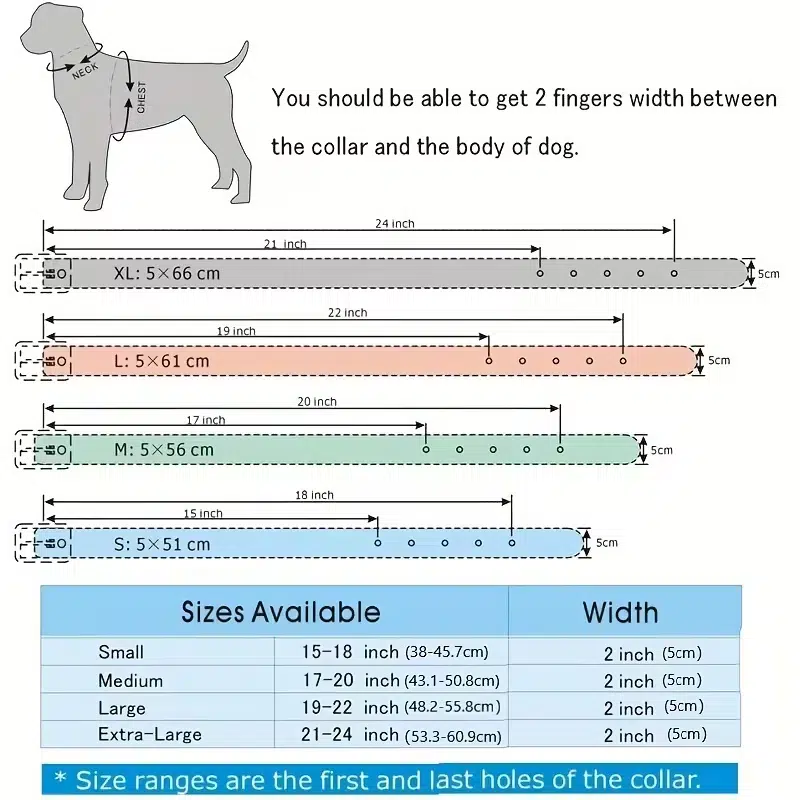 | Large | 19–22 inch (48.2–55.8 cm) | 2 inch (5 cm) |