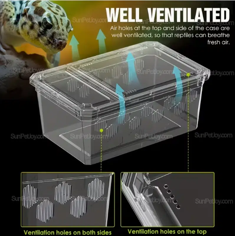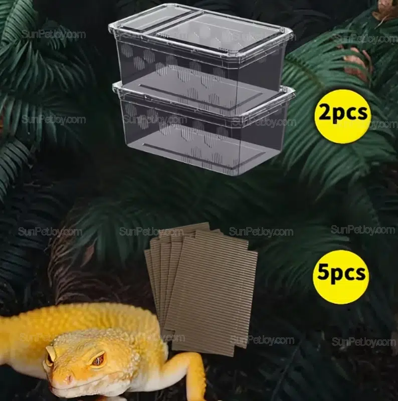 - Clear PP enclosure for full visibility during lizard breeding and monitoring