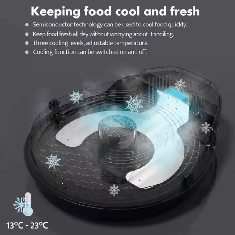 Unlike standard feeders, this model integrates semiconductor refrigeration technology to help
