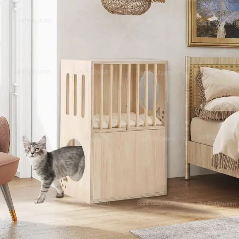 OEM Wooden Cat House Nightstand for Modern Indoor Spaces