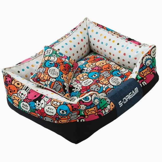 These orthopedic dog beds consist of supportive raised structures with printed fabric exteriors and waterproof elements designed to provide a defined resting area for pets. The product serves wholesalers, pet stores, e-commerce sellers, and brand developers who require consistent inventory items that align with demand for functional pet supplies.