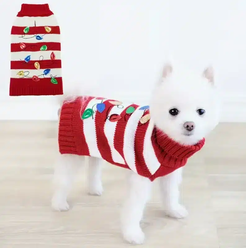 Wholesale custom Christmas dog sweaters: red/green knit pullovers for medium breeds. 100% acrylic, machine washable warmth. Factory customization for retailers—Chihuahua, Schnauzer, Teddy.