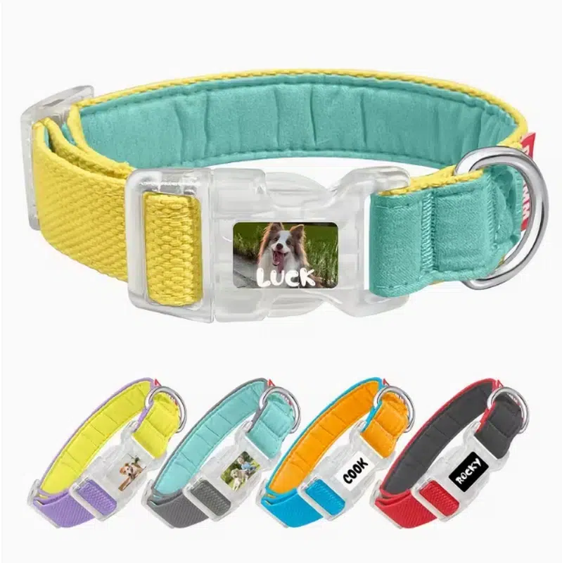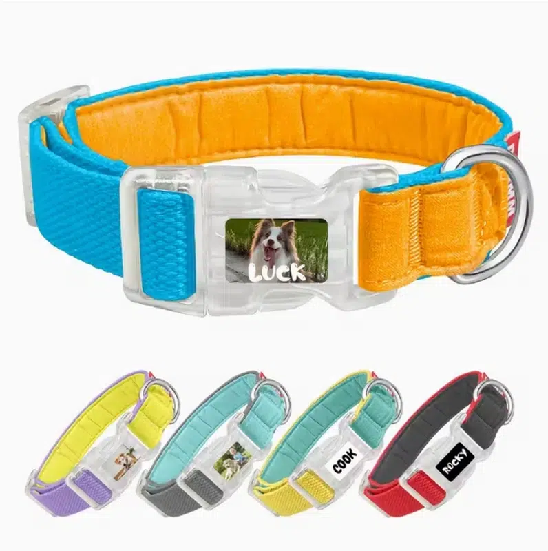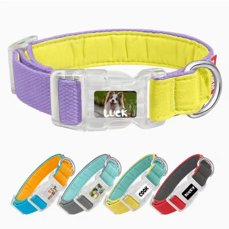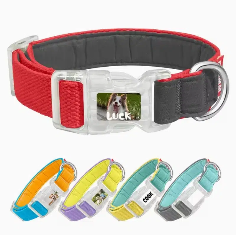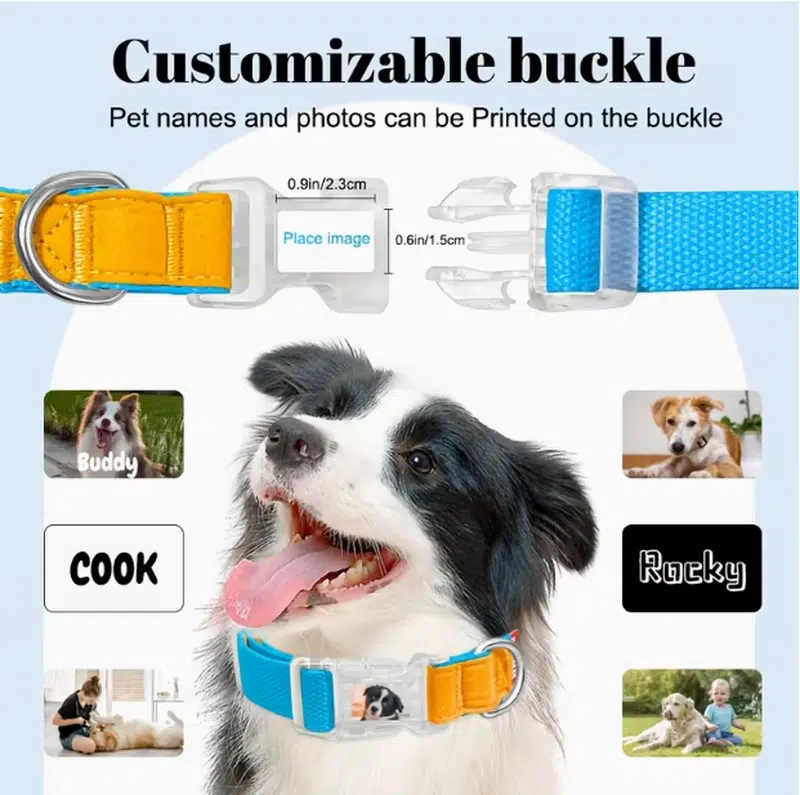 - Customizable buckle: print pet names + photos + text directly on the buckle for strong “personalized” shelf appeal.