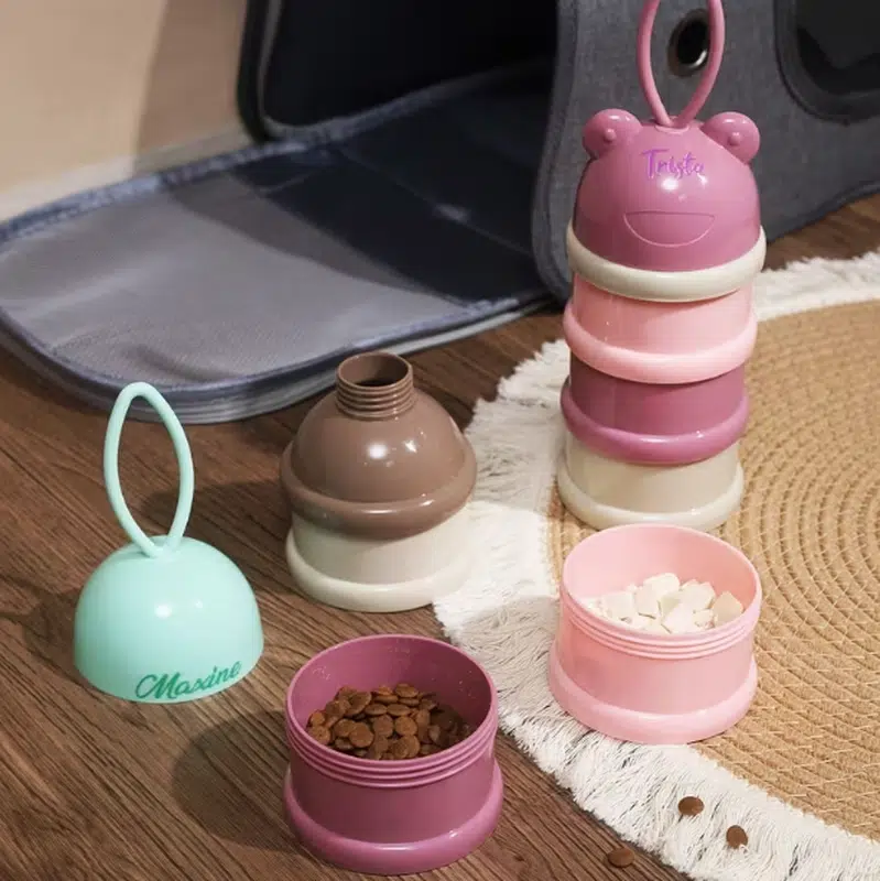 Designed with a multi-compartment structure, it allows separated storage of dry food, treats, or supplements,