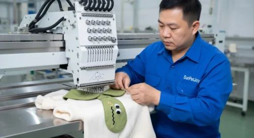 Each batch undergoes measurement verification, seam inspection, embroidery stability testing, and visual review to maintain consistency standards.