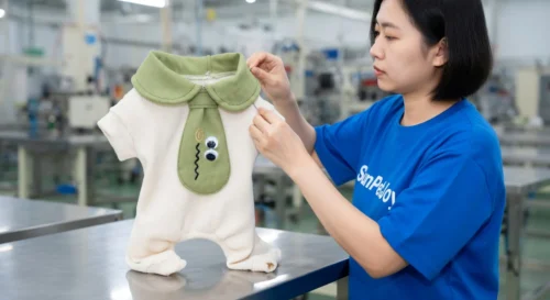 Below are real production step photos of our puppy dog onesie. Each step is executed with strict quality control to ensure consistent quality for wholesale partners.