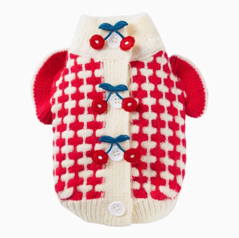 For B2B buyers, this is a reliable knitted puppy sweater program: consistent pattern placement, stable rib structure at the neck/hem, and a front closure