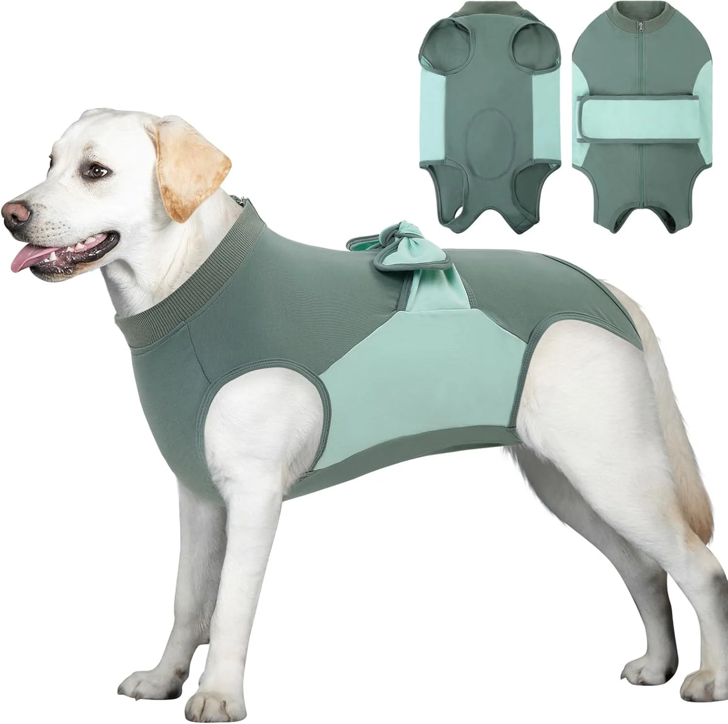 The recovery suit for dogs is a knitted garment developed for post-operative care in dogs. It features a two-color design, front zipper closure and adjustable straps to secure the suit while permitting quick dressing and removal. This surgery recovery suit for dogs serves wholesalers, pet retailers, ecommerce sellers and brand owners who supply pet medical and recovery products.