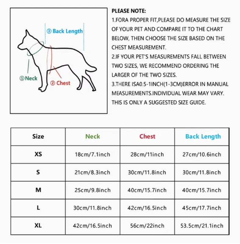 For best fit, we recommend choosing size mainly by chest measurement, then checking neck and back length together. For curly-coated dogs, fluffy breeds, or dogs with fuller fur volume, the actual fit may feel tighter than it appears in product photos. If measurements fall between two sizes, choosing the larger size is usually the safer option. Manual measurement may have a tolerance of about 1–3 cm. This is especially important when selecting a red dog sweater for toy breeds or a small dog turtleneck sweater.