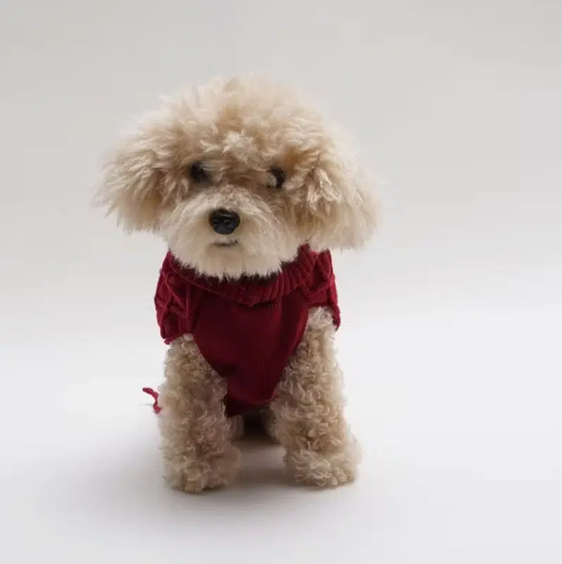 Red dog sweater should do more than add a festive color to a petwear collection. For professional buyers, the right style also needs to photograph well, fit comfortably, feel soft enough for actual wear, and support reliable private-label development. This design combines a rich wine-red tone, raised cable-inspired knit texture, a structured turtleneck silhouette, and elegant pearl embellishment to create a boutique-ready item that feels dressy, seasonal, and commercially versatile. For buyers developing a red dog sweater for small dogs or a more premium knitted red dog sweater line, this style offers strong visual value.