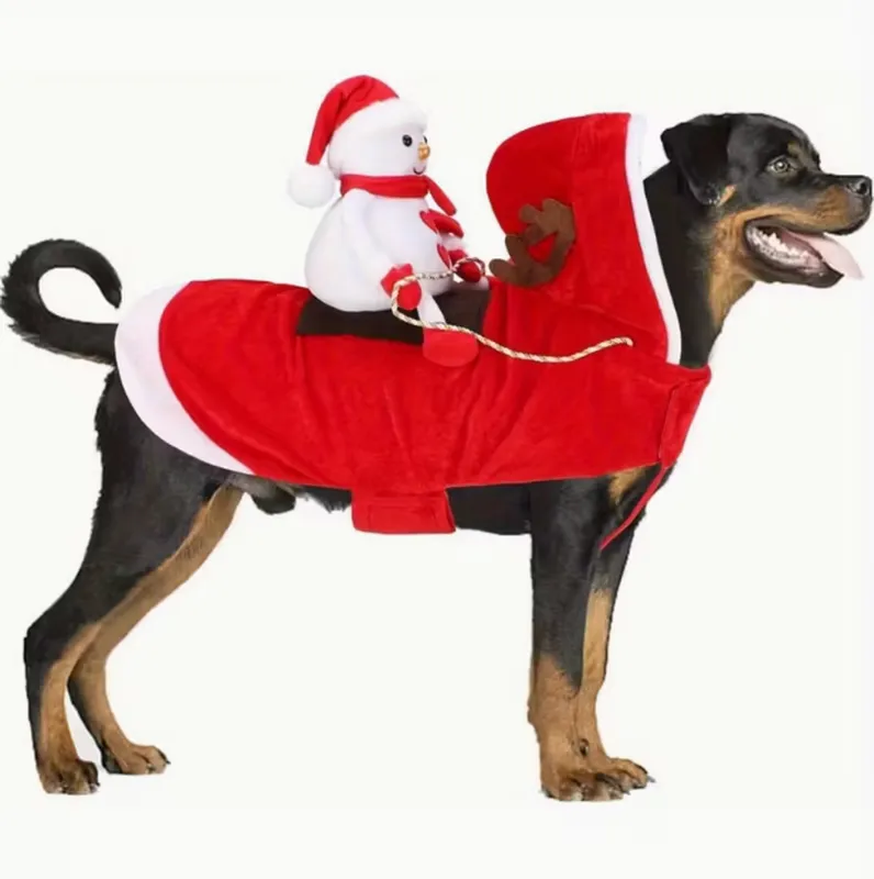 Elevate your holiday inventory with SUN PET‘s bestselling Red Santa Riding Dog Costume. Crafted from durable polyester, this festive outfit features a plush snowman rider, antler hood, and easy hook-and-loop fasteners. Perfect for B2B wholesalers, pet stores, and e-commerce brands seeking high-margin Christmas petwear.
