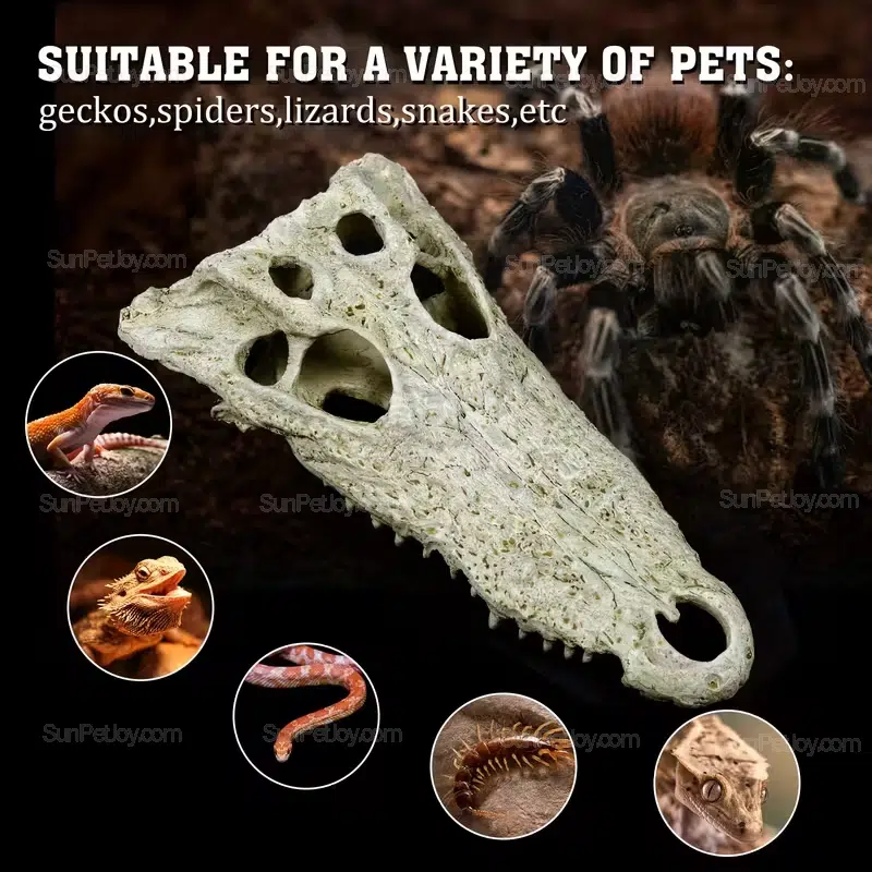 Rather than serving as a decorative item only, this skull hide functions as a habitat structure that supports animal behavior such as hiding, feeding interaction, and territory definition. The internal cavity design allows keepers to position food or observe reptiles without frequent disturbance.