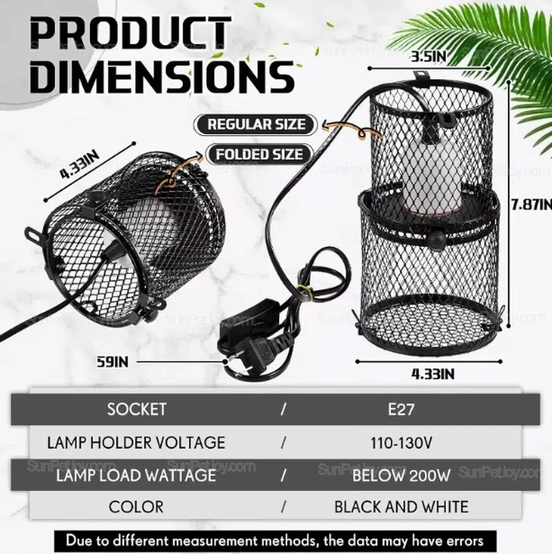 Ideal for wholesalers and distributors serving the pet industry, this holder supports snakes, lizards, turtles, frogs, and even chicks in brooding applications. Its secure clamp mount and battery-free operation offer reliability in bulk installations, while the E27 socket accommodates bulbs up to 200W for versatile lighting needs like sunbathing or night heating.
