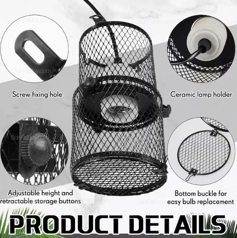 The retractable reptile heat lamp holder features a unique adjustable mesh guard and secure clamp mount, ideal for precise heat positioning in terrariums or vivariums. Its space-saving design suits professional setups for snakes, lizards, and amphibians, while supporting OEM customization and bulk wholesale production for distributors and brands.