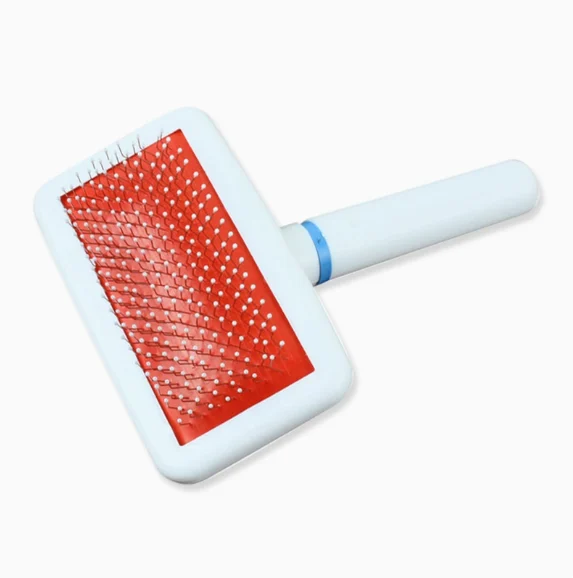Durability stems from the solid plastic molding and secure pin attachment that resists bending or loosening under normal operating conditions. This characteristic benefits bulk purchasers by lowering long-term procurement costs and minimizing quality-related losses in distribution. Pet stores and online sellers can stock the item confidently knowing it performs consistently across multiple customers. The robust build translates to reliable daily use that keeps dogs comfortable during shedding periods and gives owners confidence that the tool will remain functional over extended periods of home grooming. Comfort during grooming comes from the pin layout and rounded tips that move smoothly through the coat without excessive pulling. The 40g weight and ergonomic handle shape reduce hand fatigue for both professional groomers and pet owners. This supports higher customer satisfaction scores for retailers and encourages positive reviews that drive organic sales growth. For dogs the experience promotes relaxed grooming sessions that contribute to better skin and coat health, reinforcing the emotional bond between pets and their caregivers through routine care that feels gentle rather than abrasive.