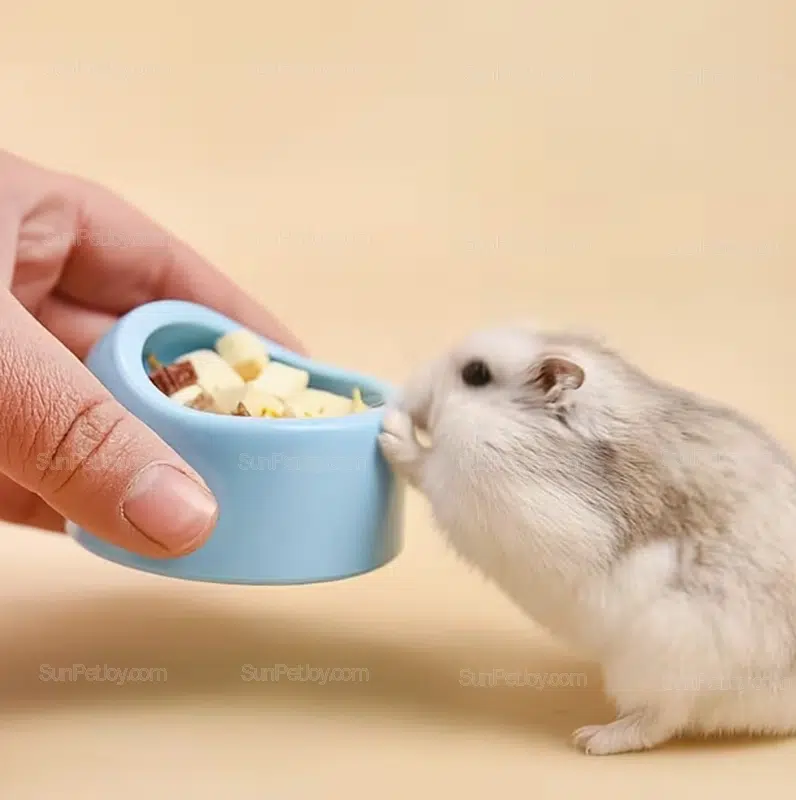 The weighted structure helps reduce tipping and food spills, making it suitable for daily feeding of hamsters, rodents, birds, and other small animals