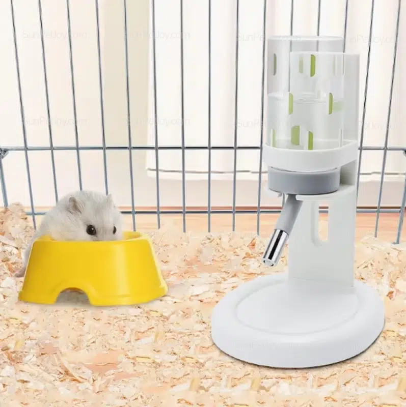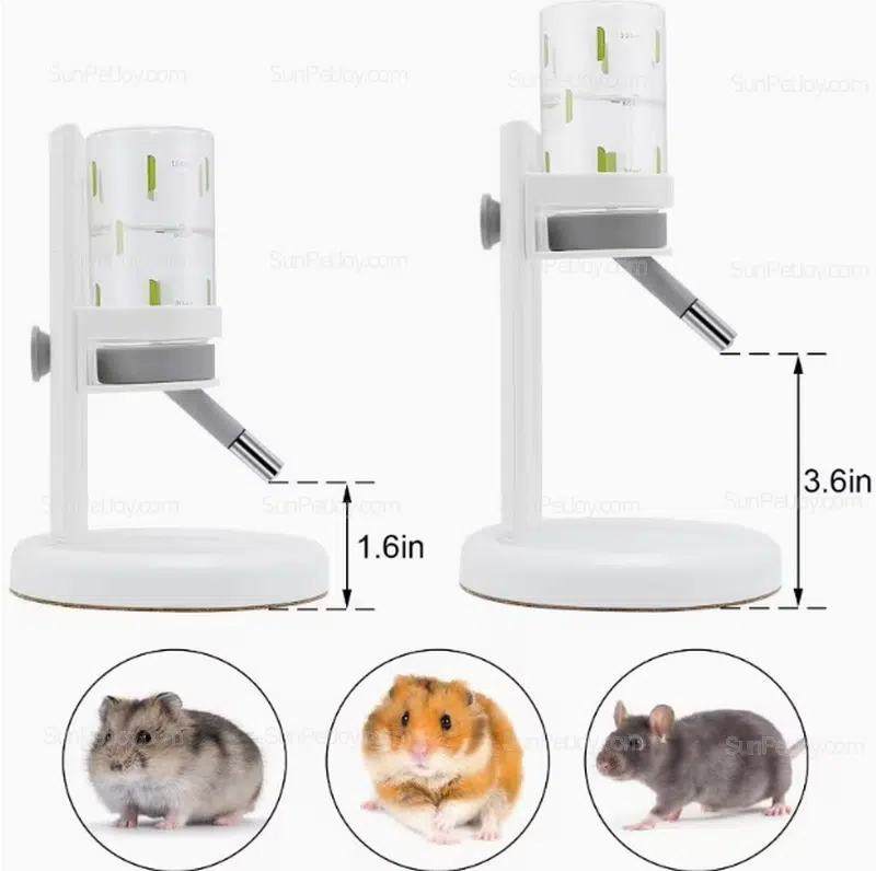 The vertical stand allows flexible height adjustment, making it suitable for hamsters, mice, gerbils, and other small animals housed in cages,